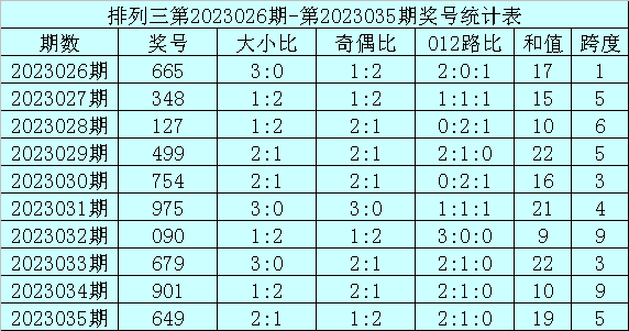 上期回归:陈列三第2023035期奖号为649,奖号012路比为2:1:0,奇偶比为1:2皇冠信用盘网址,大小比为2:1,和值为19,跨度为5。
